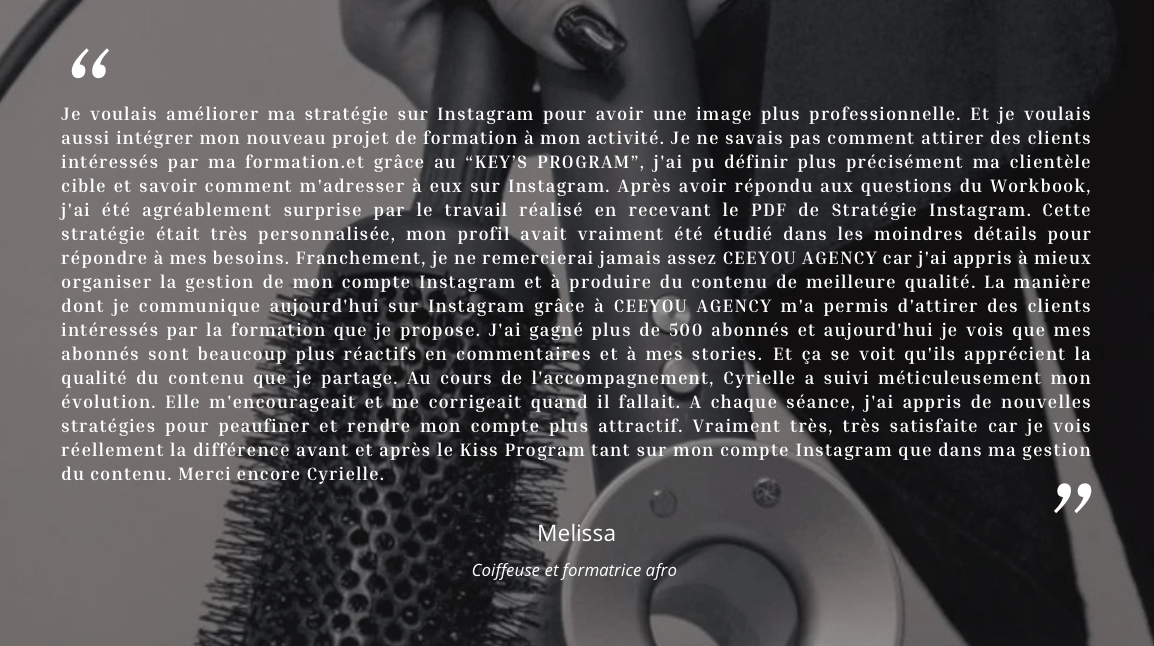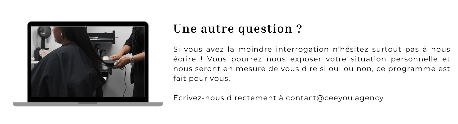 CEEYOU AGENCY ne peut pas et ne donne aucune garantie sur les résultats ou les gains avec nos formations, cours, programmes, masterclass, coaching, outils ou stratégies.